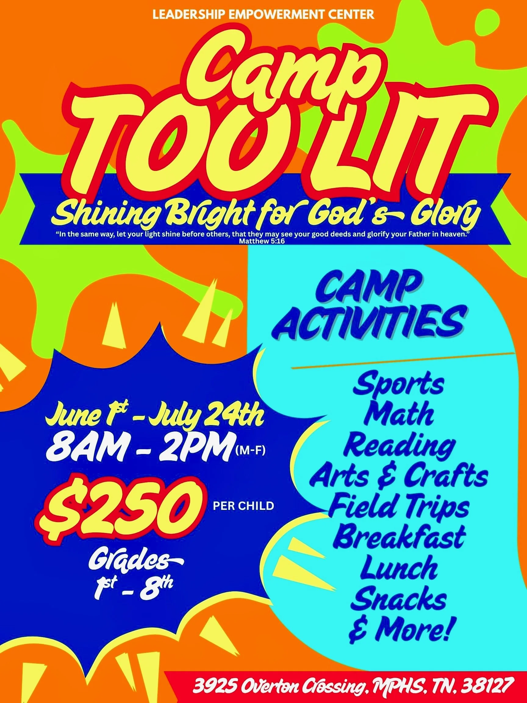 LEC is excited to offer CAMP TOO LIT Summer 2026!